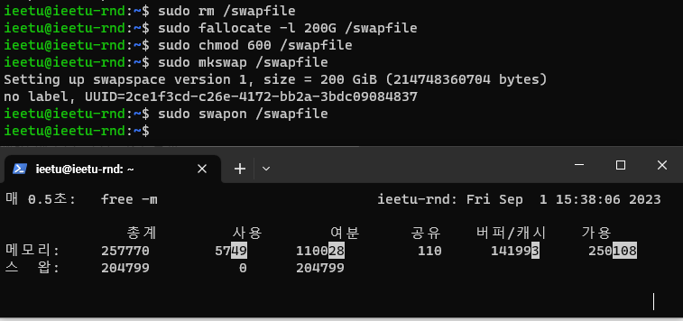 Swap 파일 제거 후 재설정