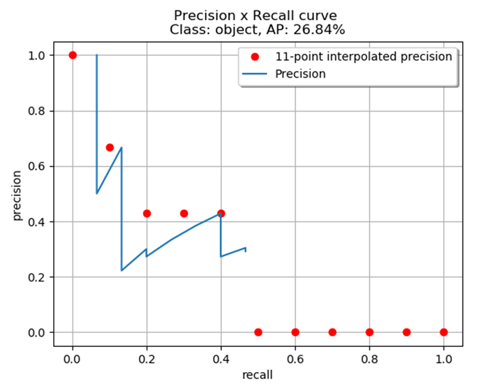 [ap, mpre, mrec, _] = ElevenPointInterpolatedAP(rec, prec)