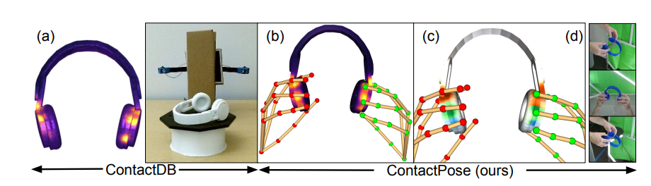 (콘텍트 관련3) https://arxiv.org/abs/1904.06830 (ContactDB: Analyzing and Predicting Grasp Contact via Thermal Imaging, ContactDB는 컨택 맵으로 질감 처리된 50개의 가정용 객체의 3750 3D 메시와 동기화된 RGB-D+ 열 이미지의 375K 프레임을 포함한)