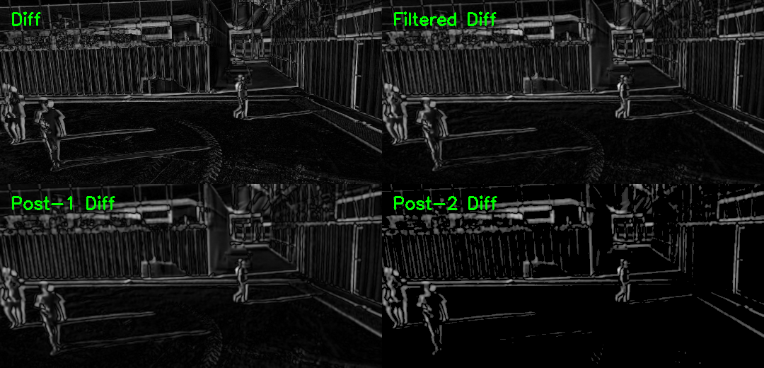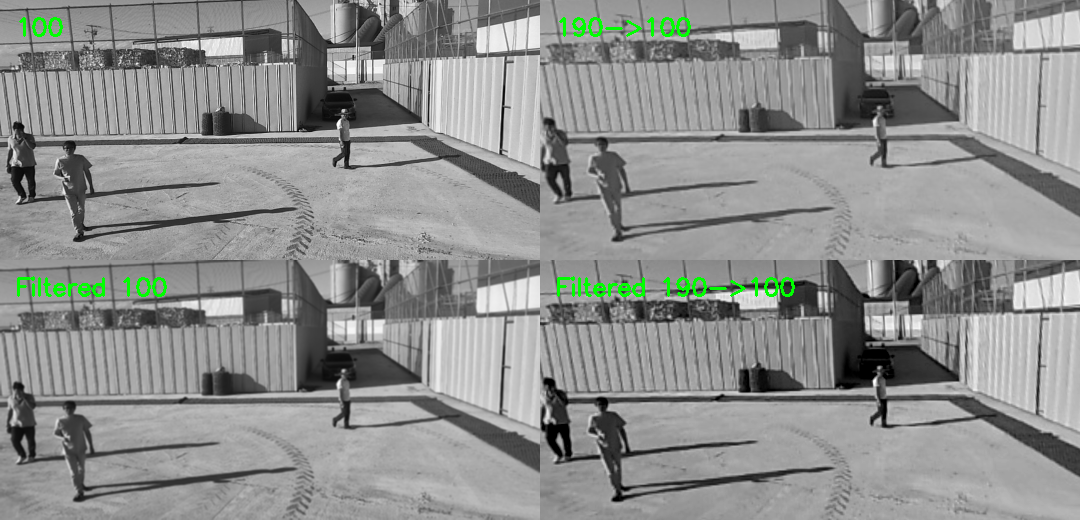 - 좌측 영상과, 호모그래피가 적용된 우측 영상이 겹쳐진 영상은 아래와 같다. 좌우 영상의 각 지면에 대한 homography를 사용함으로써 지면의 영역은 일치하나 높이를 가진 객체 영역은 차이를 보이고 있음.