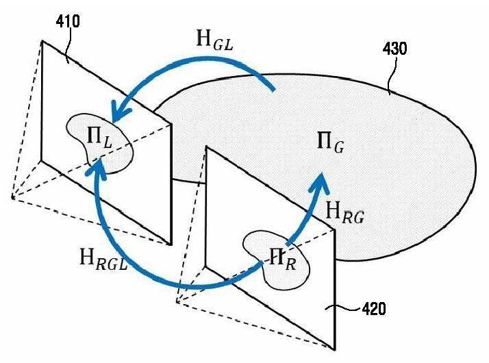 - 스테레오 이미지 시차 정합을 이용한 이미지 객체 검출 장치 및 방법 에서 지면과 영상의 변환관계(homography)를 이용해 스테레오 카메라 시스템에서 두 영상을 지면 기준 변환을 통해 정합하고, 그 차이 정보를 이용하여 지면 위의 3D 객체를 추정할 수 있다.
