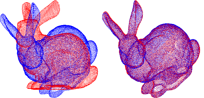 - 점군 를 를 이용해 회전한 에 대해서 와 을 입력으로, ICP를 통해 다시 를 구하는 예제.