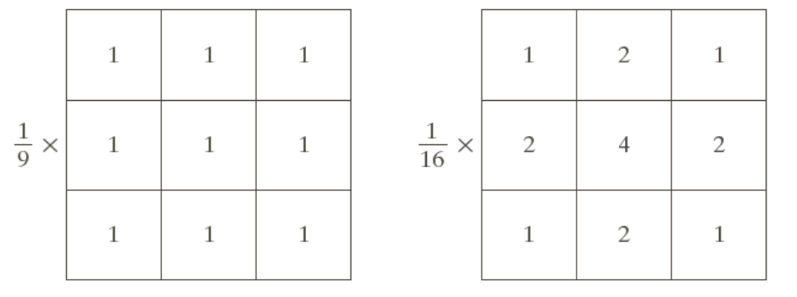 - 주변 픽셀들의 평균값으로 현재 픽셀을 바꾸는 방법.