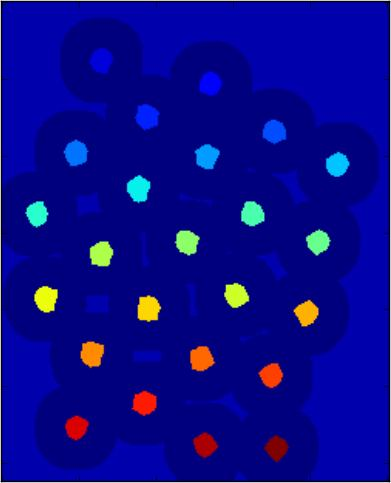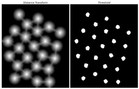 ret, sure_fg = cv.threshold(dist_transform,0.7*dist_transform.max(),255,0)
