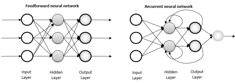 - 그림을 보면 출력층이 두개로 분기 되어 하나는 그대로 출력, 하나는 자기 자신에 입력됨(순환)
