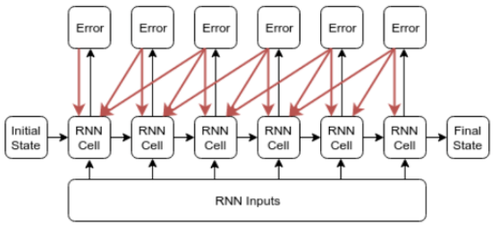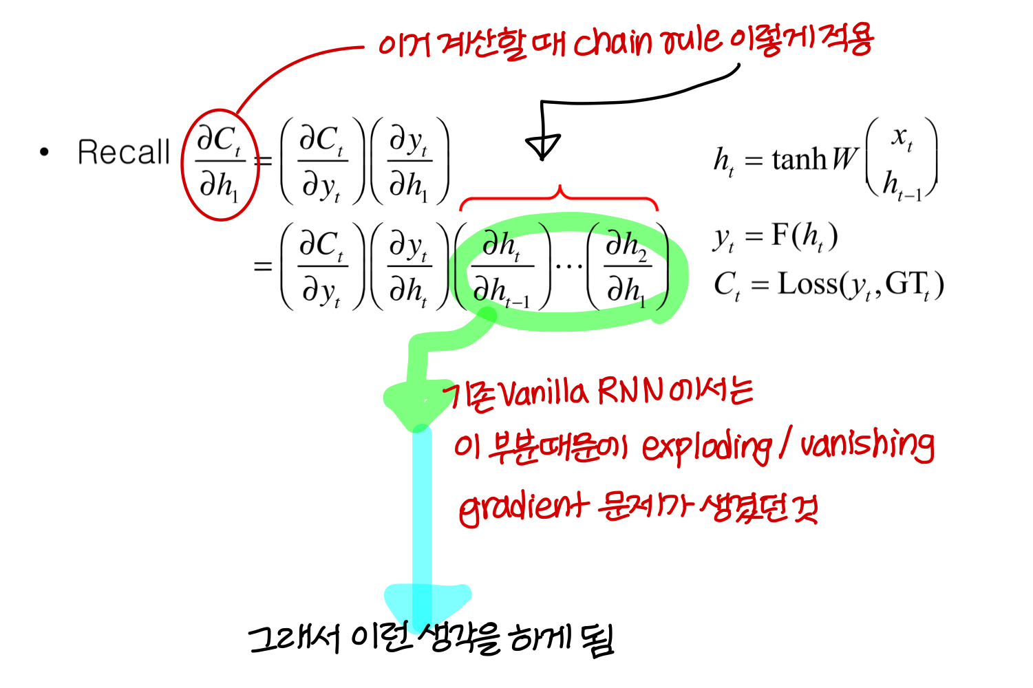- 위 그림은 은 시점의 Loss에서 흘러들어온 그래디언트인 뿐 아니라 별표에 해당하는 그래디언트 또한 더해져 동시에 반영된다는 뜻