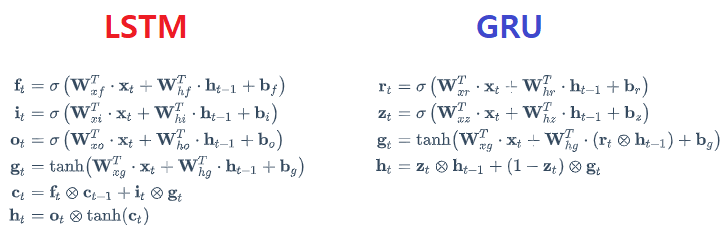 - LSTM에서 ct와 ht가 하나의 ht로 합쳐졌습니다.
