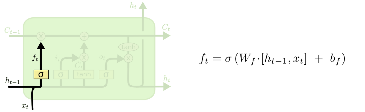 - : forget gate @sigmoid = 이전 입력 값을 얼마나 기억할 것인지