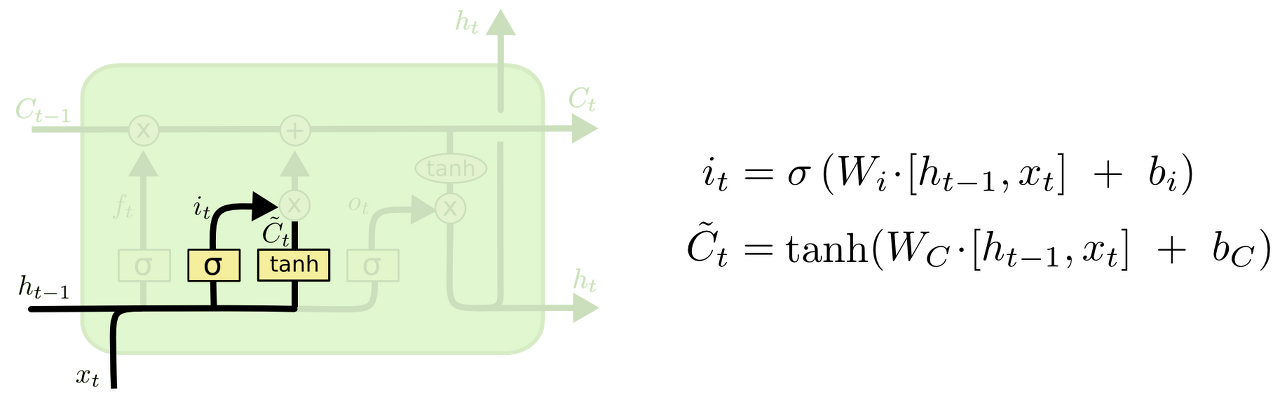 - : input gate @sigmoid = 현재 입력 값을 얼마나 반영할 것인지