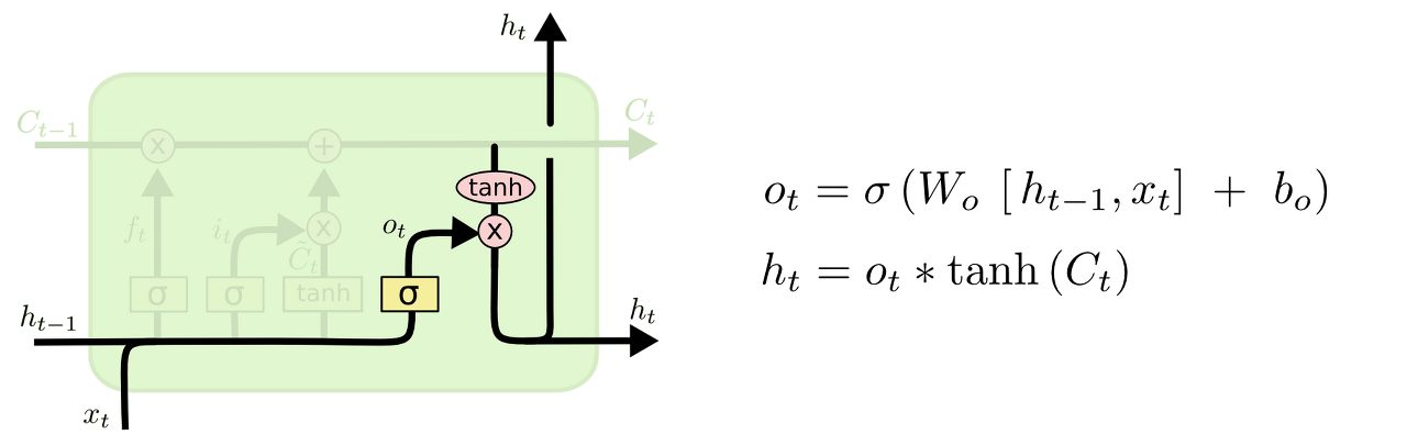 - output gate는 update된 cell state의 정보를 얼마나 다음 hidden state에 반영할지를 정해준다