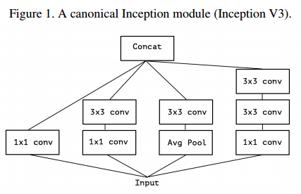 - 아래 그림은 Inception-V3에서 사용하는 Inception 모듈로, 하나의 입력이 여러 layer를 통과한 뒤 합쳐지는 구조를 가짐.