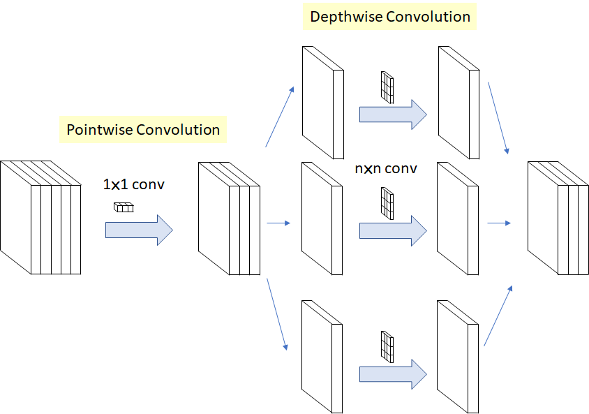 - Depthwise Convolution을 수행 후 Pointwise Convolution을 수행함