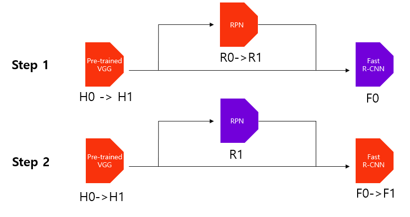 - 앞서 학습시킨 RPN과 Fast R-CNN에서 RPN에 해당하는 부분만 학습(fine tune) 시킨다.