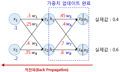 업데이트 된 가중치에 대해서 다시 순전파를 진행하여 오차가 감소하였는지 확인함
