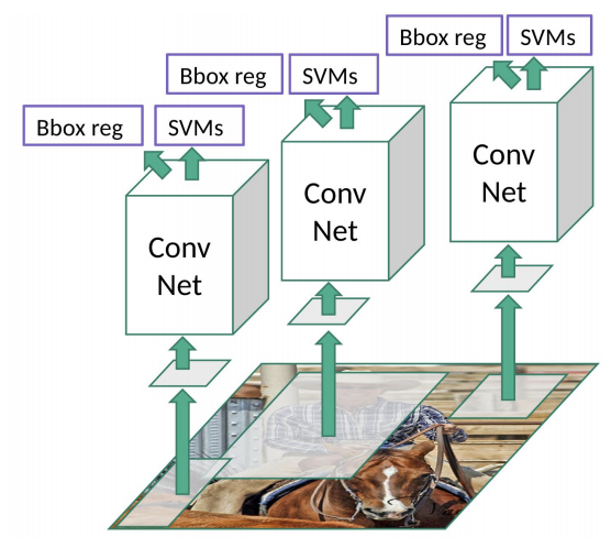 OverFeat의 Sliding Window 방법과 달리, R-CNN은 Selective Search를 사용해 이미지에서 제안된 후보 영역(Region Proposals)을 먼저 추출한 뒤, CNN을 활용해 각 영역을 분류하고 바운딩 박스를 조정하는 방법.