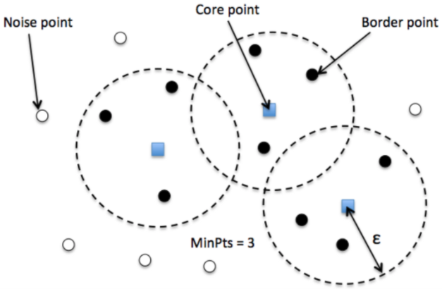 - DBSCAN은 모든 데이터 포인트를 아래 3가지로 분류한다.
