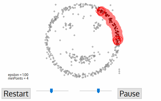 - 모든 포인트가 Core Point / Border Point / Noise Point 중 하나로 구분되면 종료