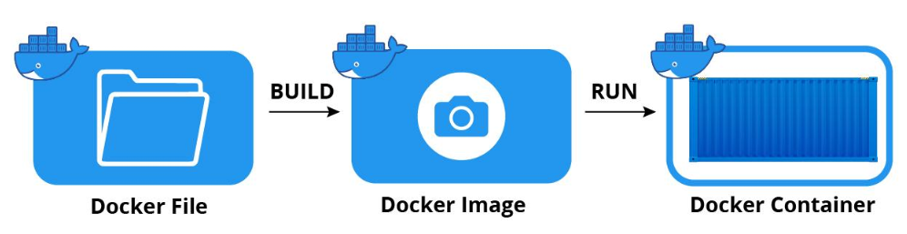 Docker File -> Docker Image : 도커 이미지를 만들때 사용하는 Docker File을 이용하여 docker build 명령어를 통해 빌드.